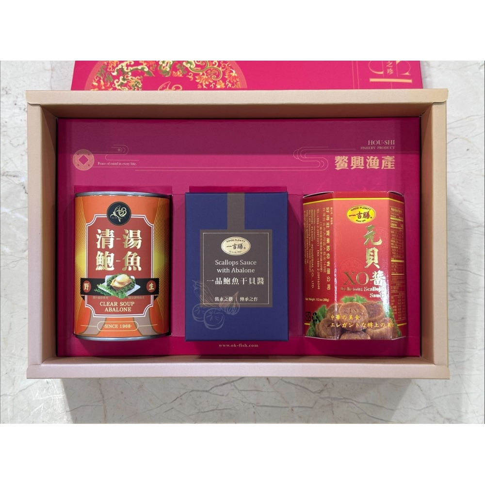 清湯鮑魚10粒、鮑魚干貝XO醬、元貝XO醬